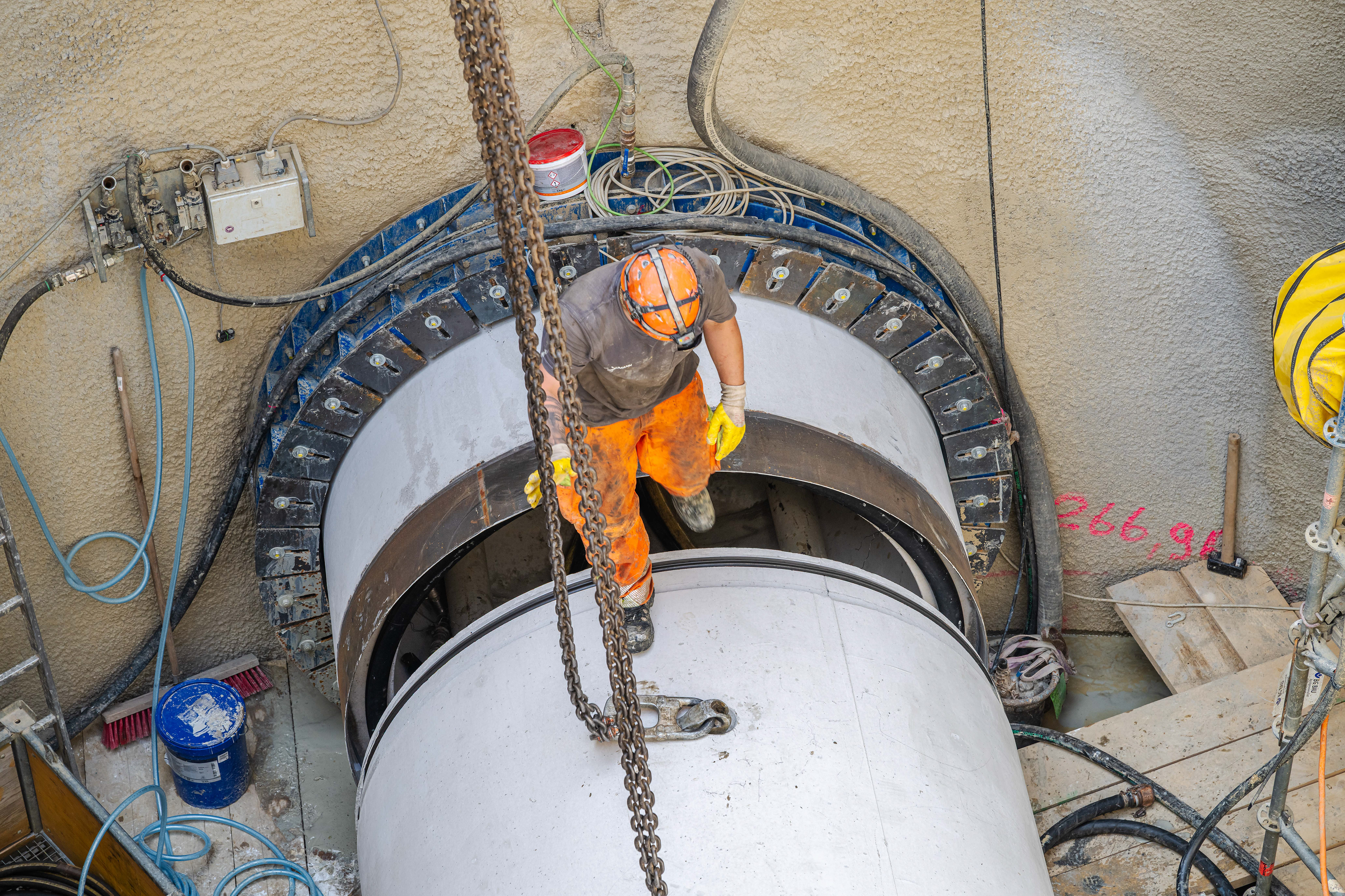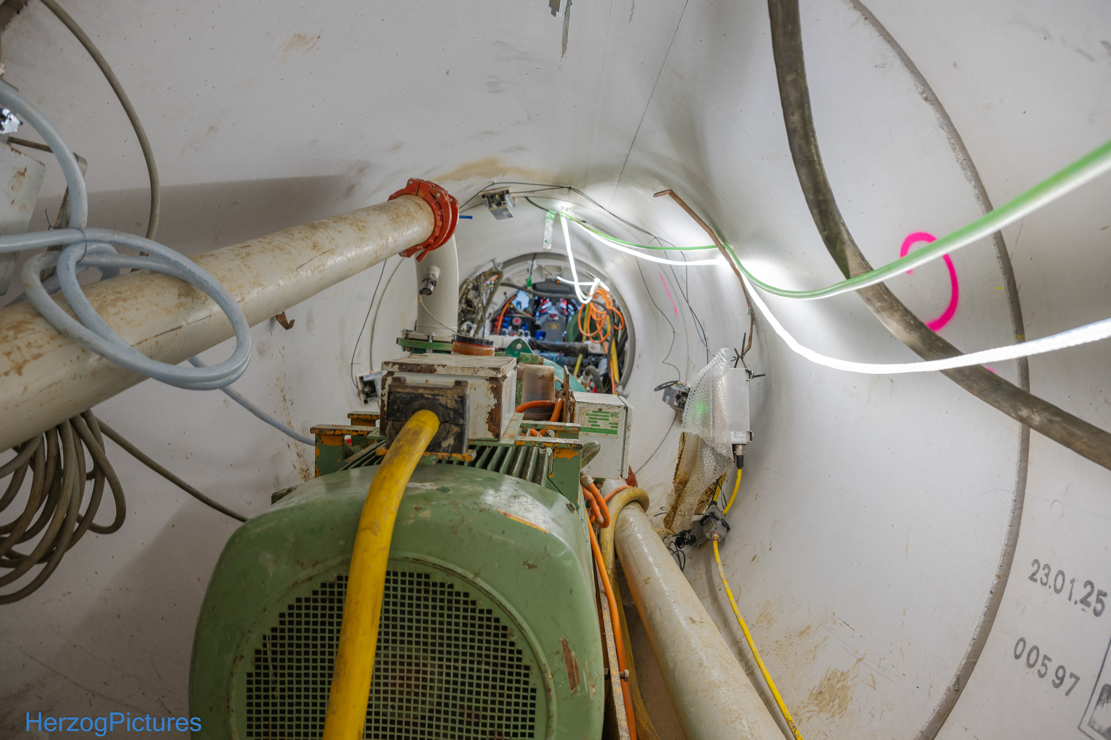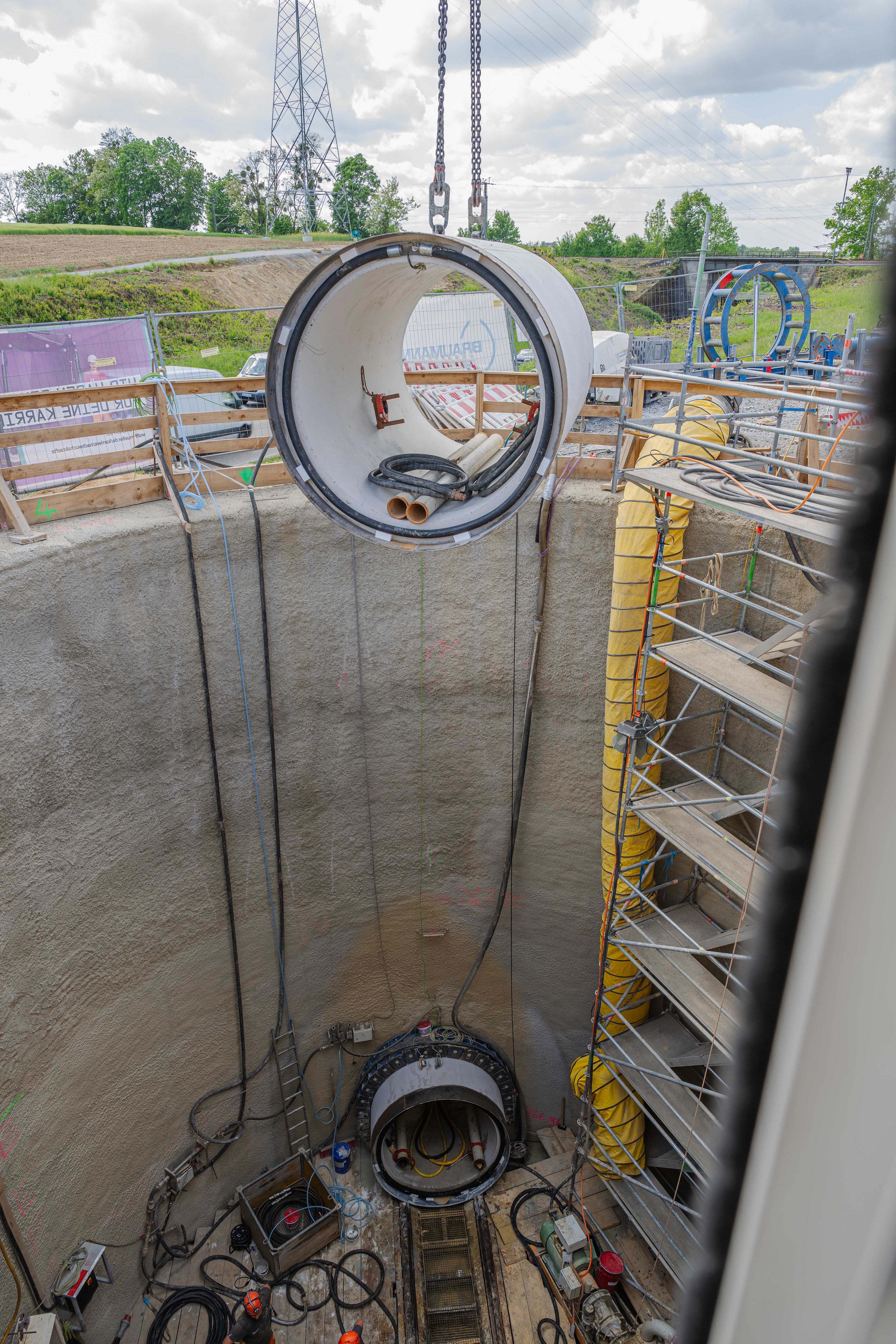 19. Mai 2025 - Im Blechbergele - Blick in die Tunnelbohrmaschine während des Nachschiebens einer Folgeröhre
