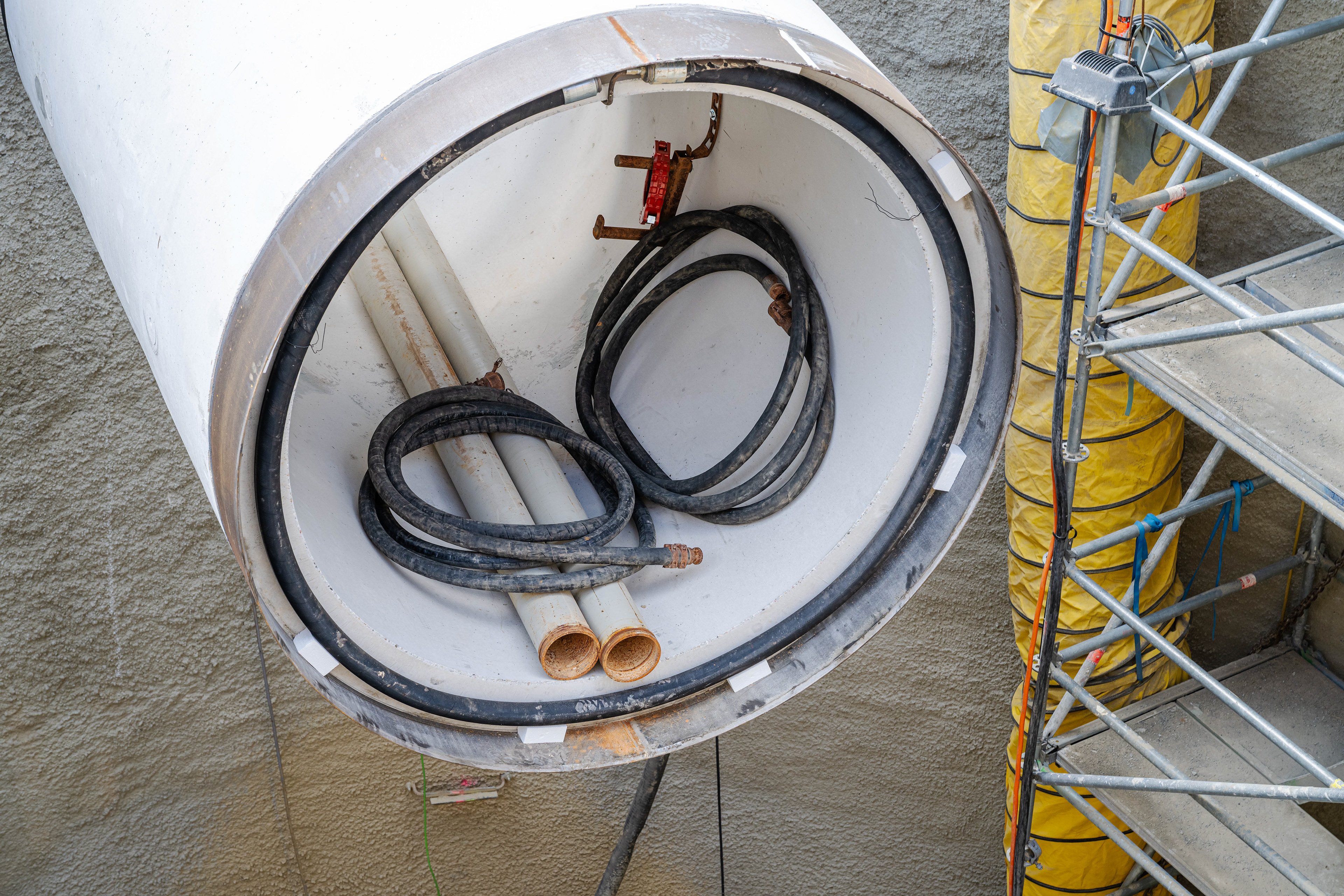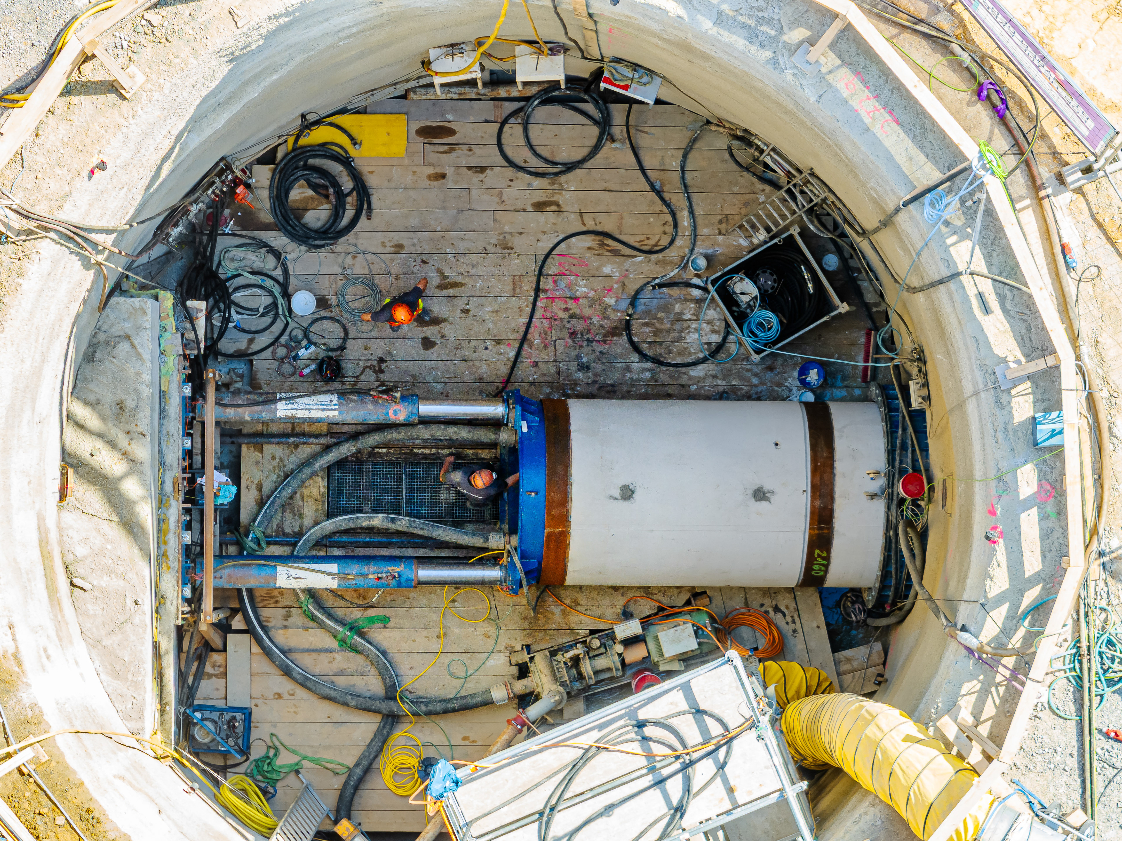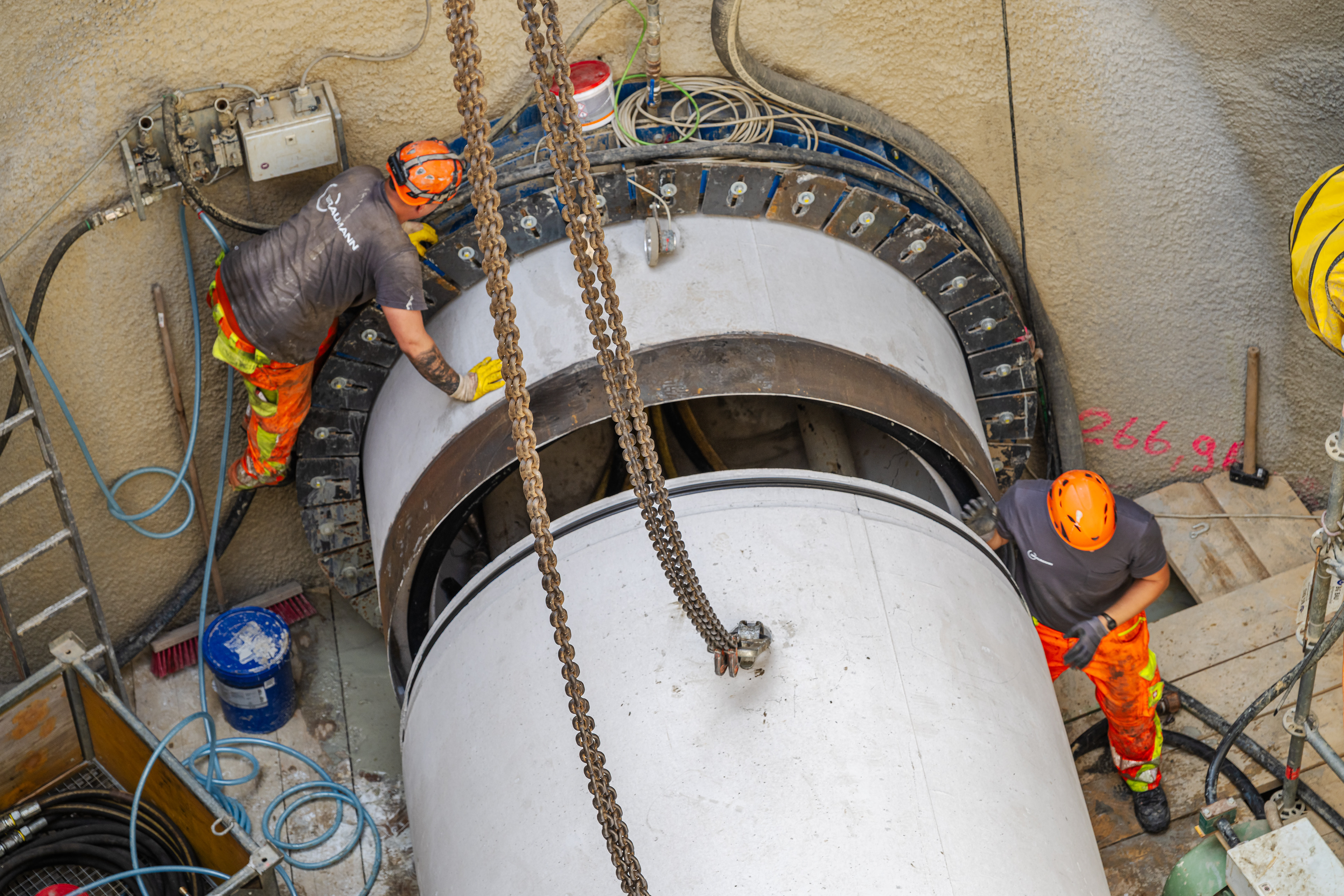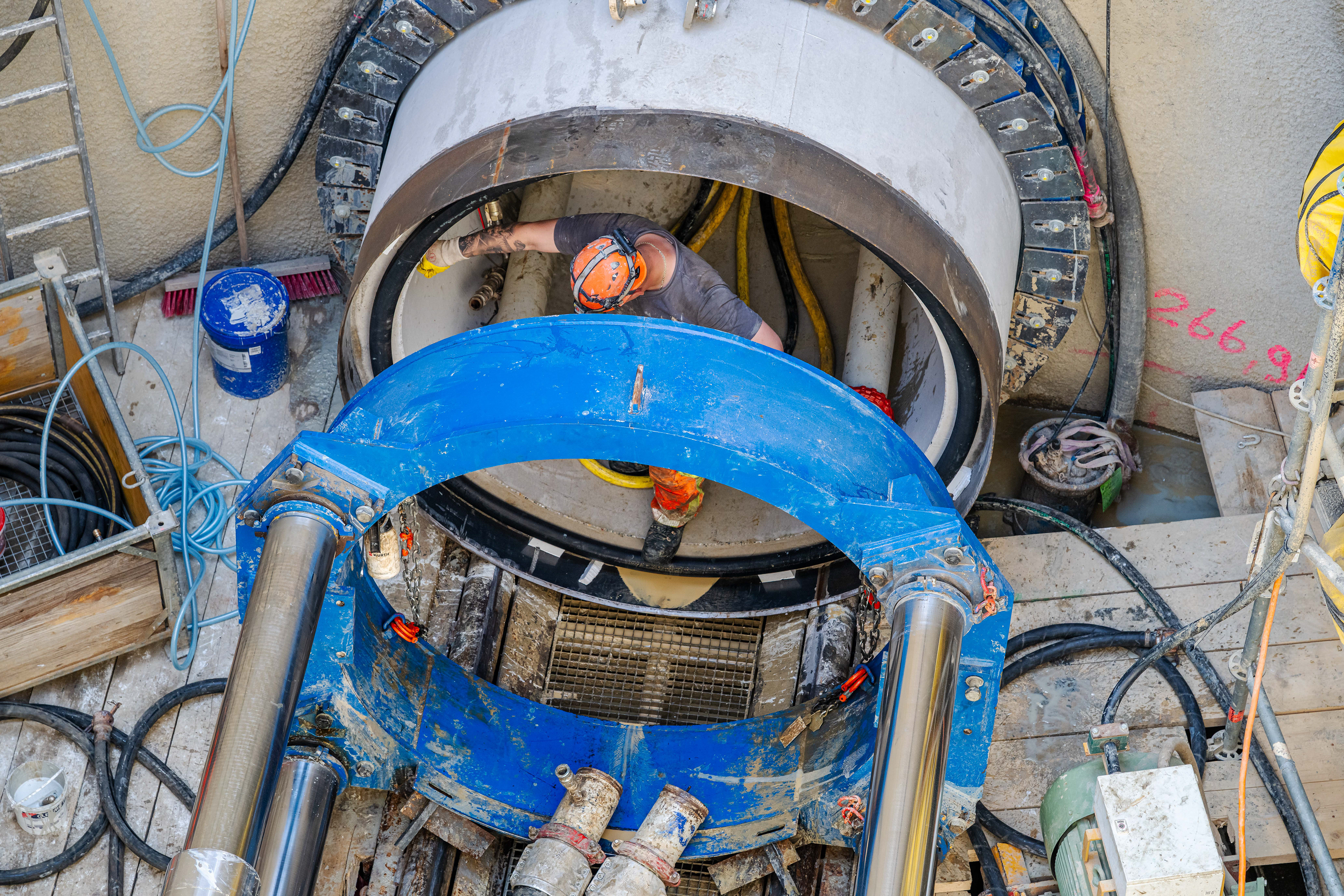 19. Mai 2025 - Im Blechbergele - Blick in die Tunnelbohrmaschine während des Nachschiebens einer Folgeröhre