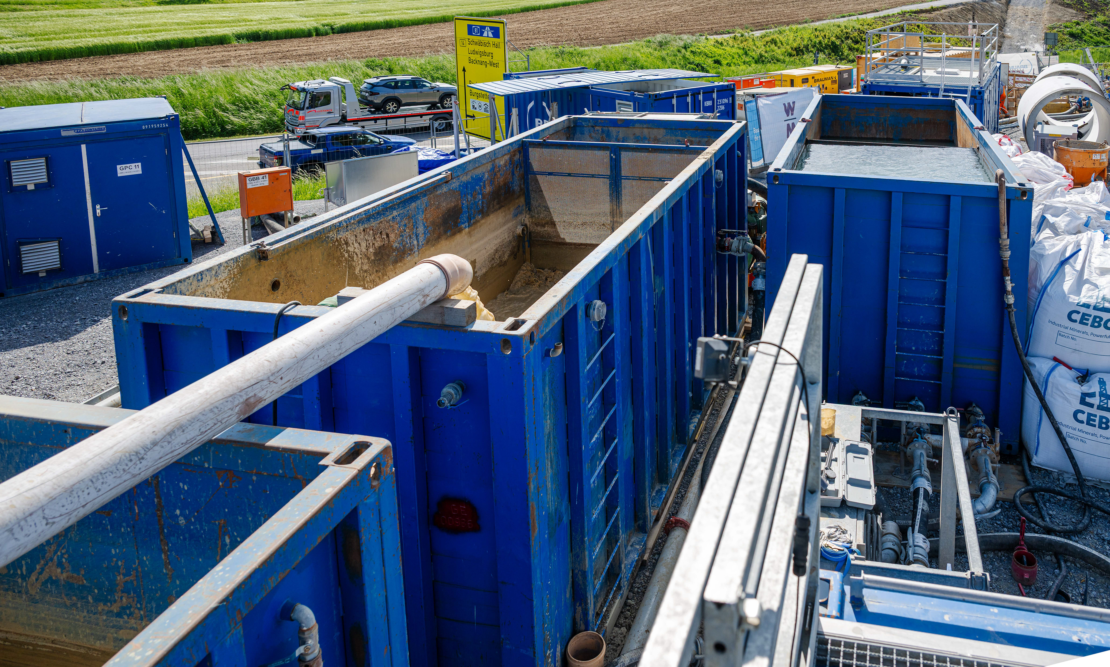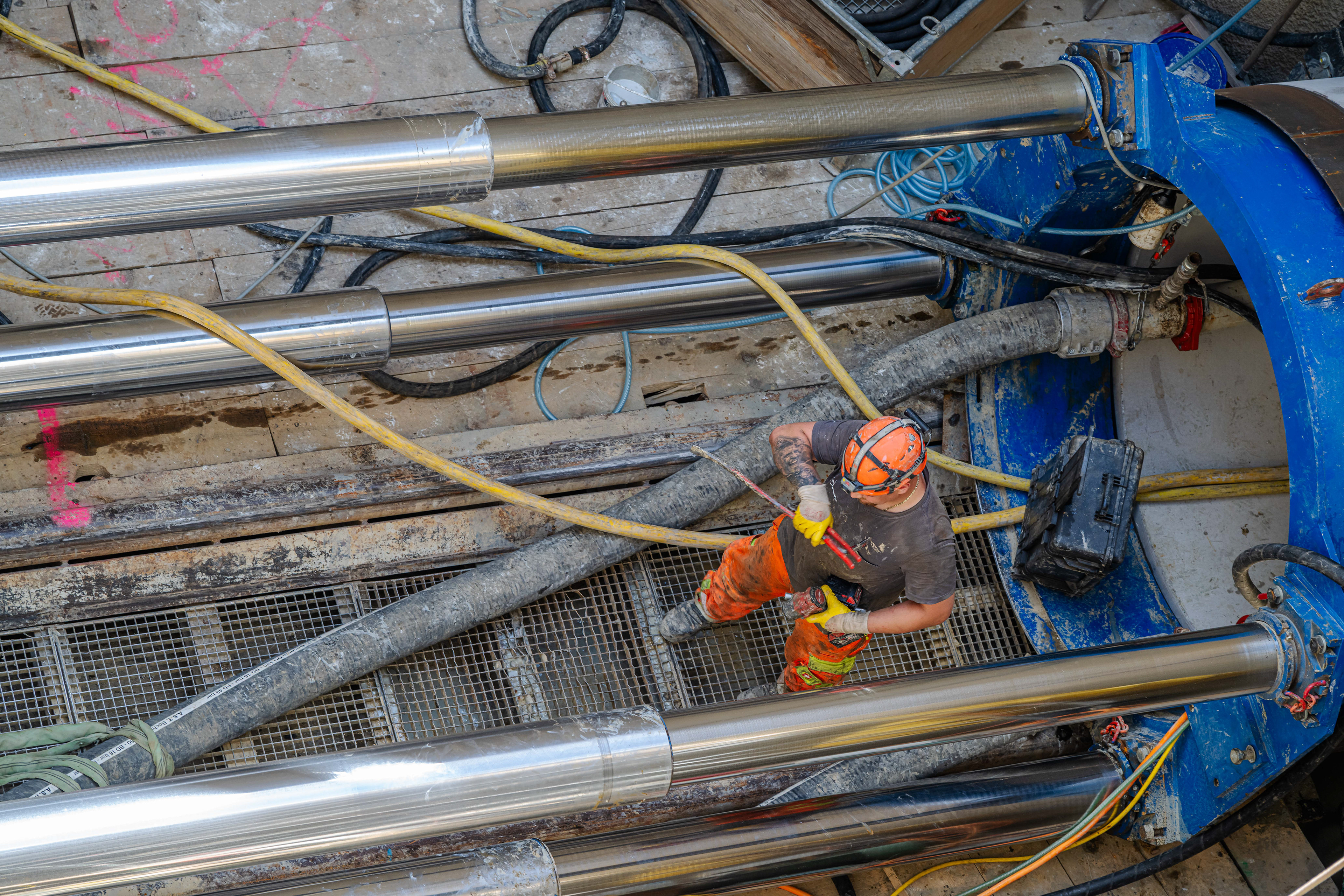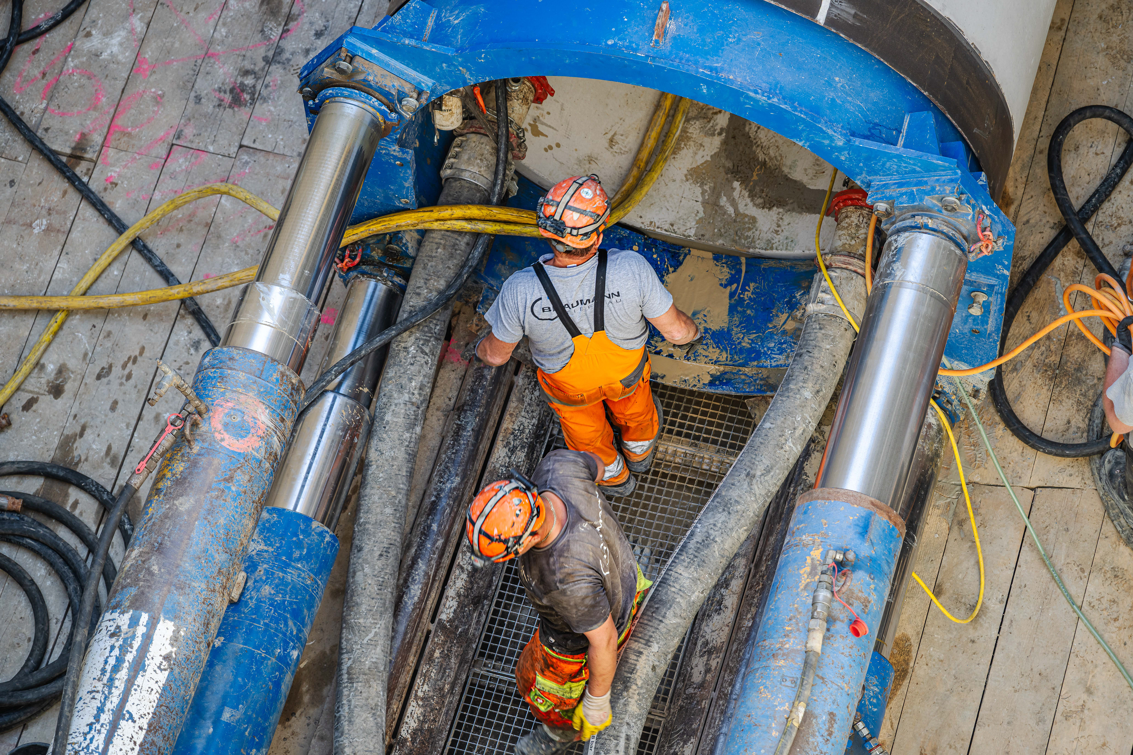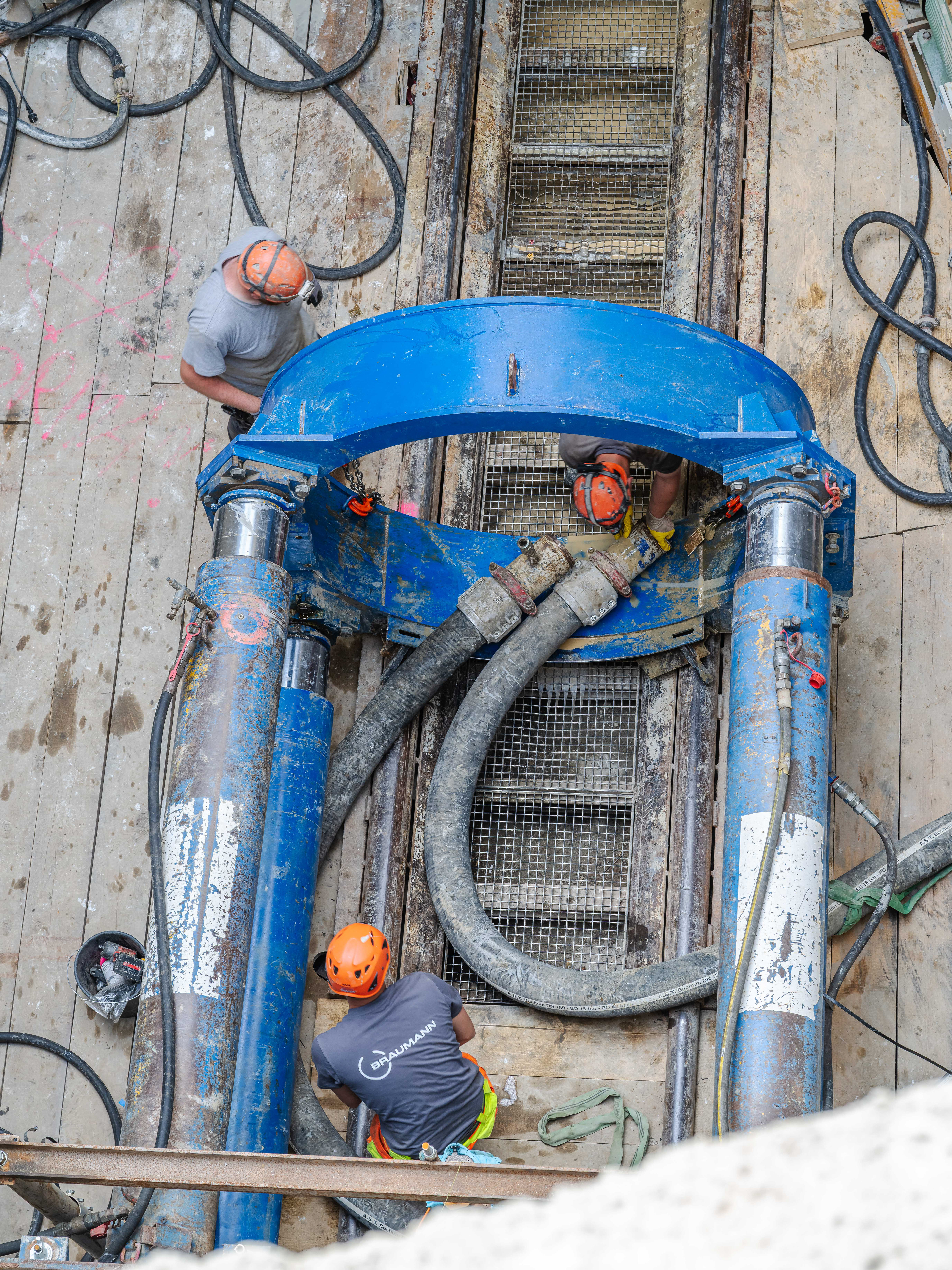 • Anschluss der Bentonit-/Slurryleitungen, Steuerleitungen, Navigation, Kamera.