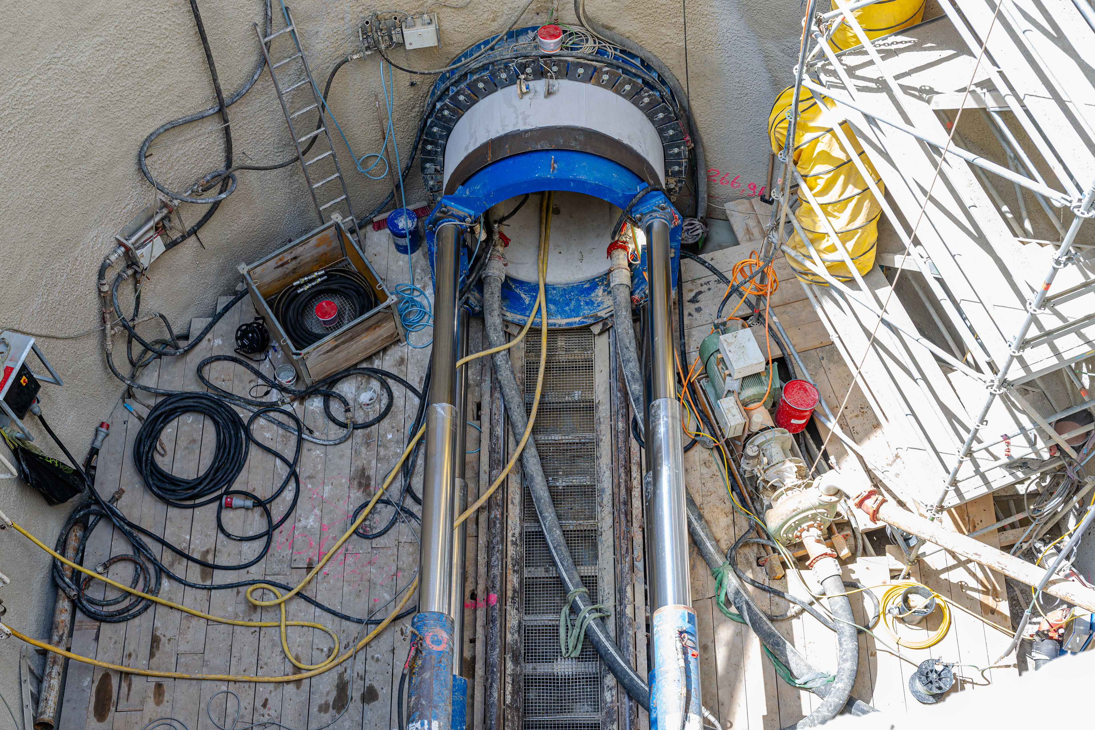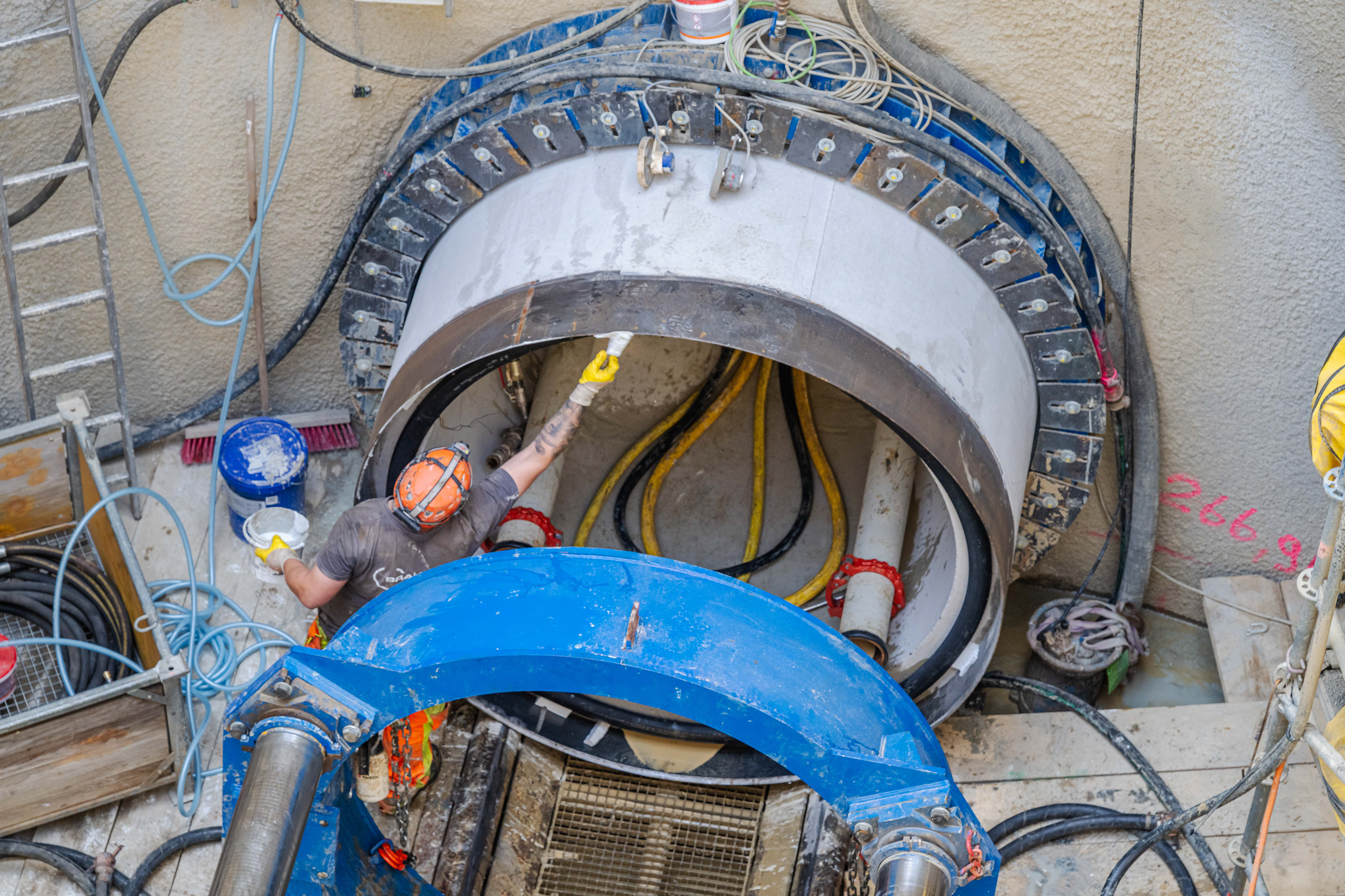 • Einbau von Führungssystemen und dem Vortriebsrahmen (Hydraulikpressen).