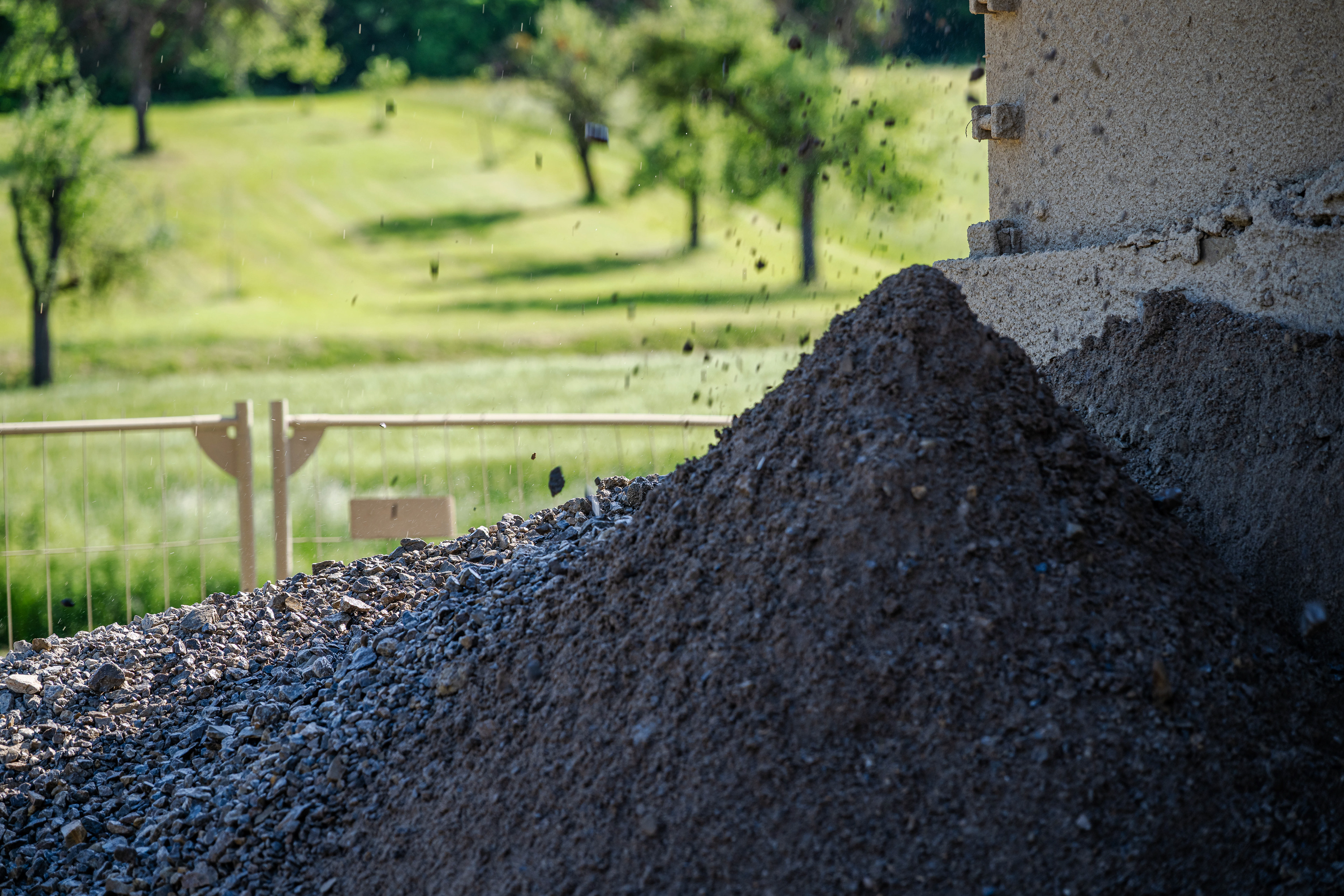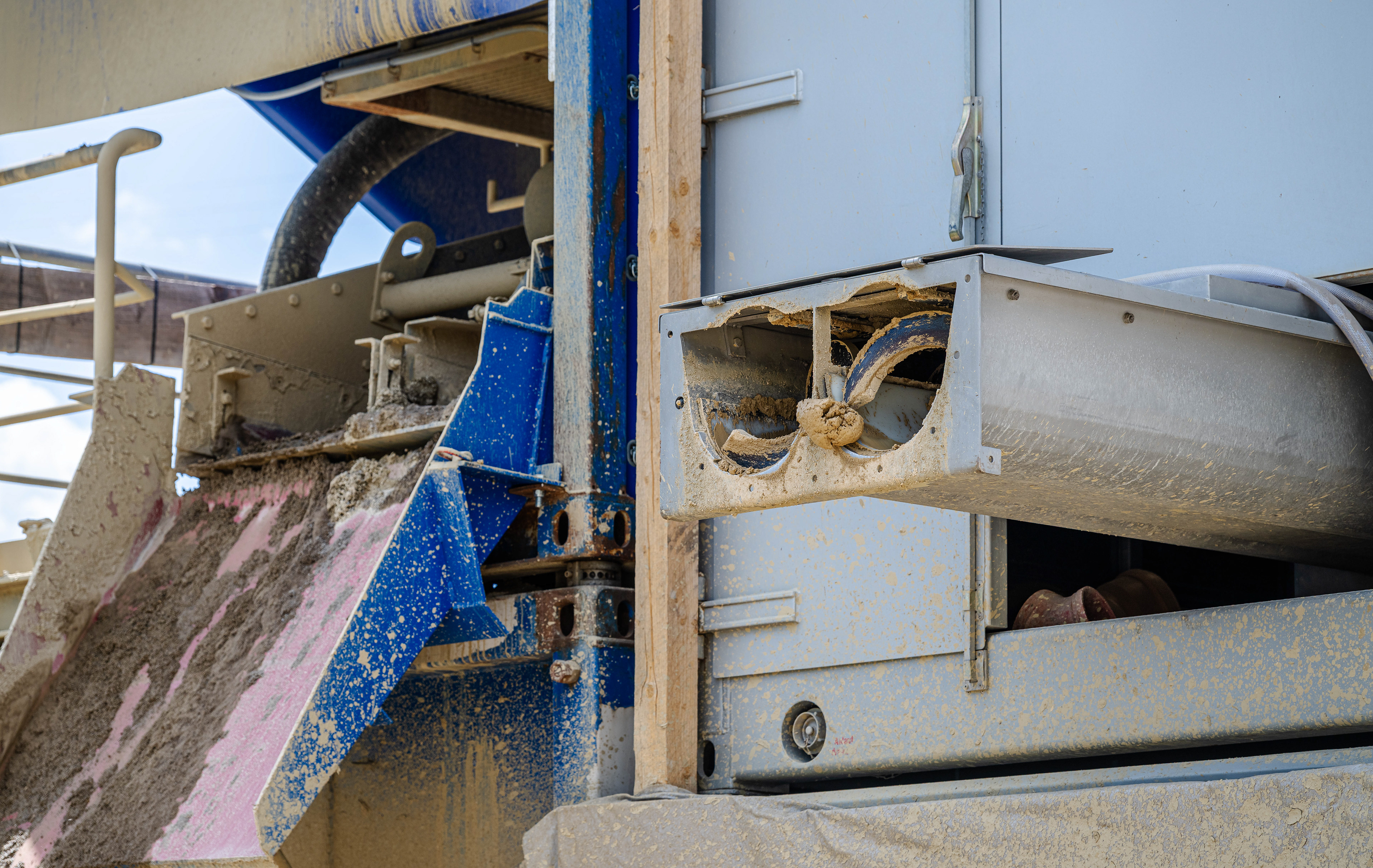 Das ausgebohrte Gestein wird gewaschen und abgesondert.