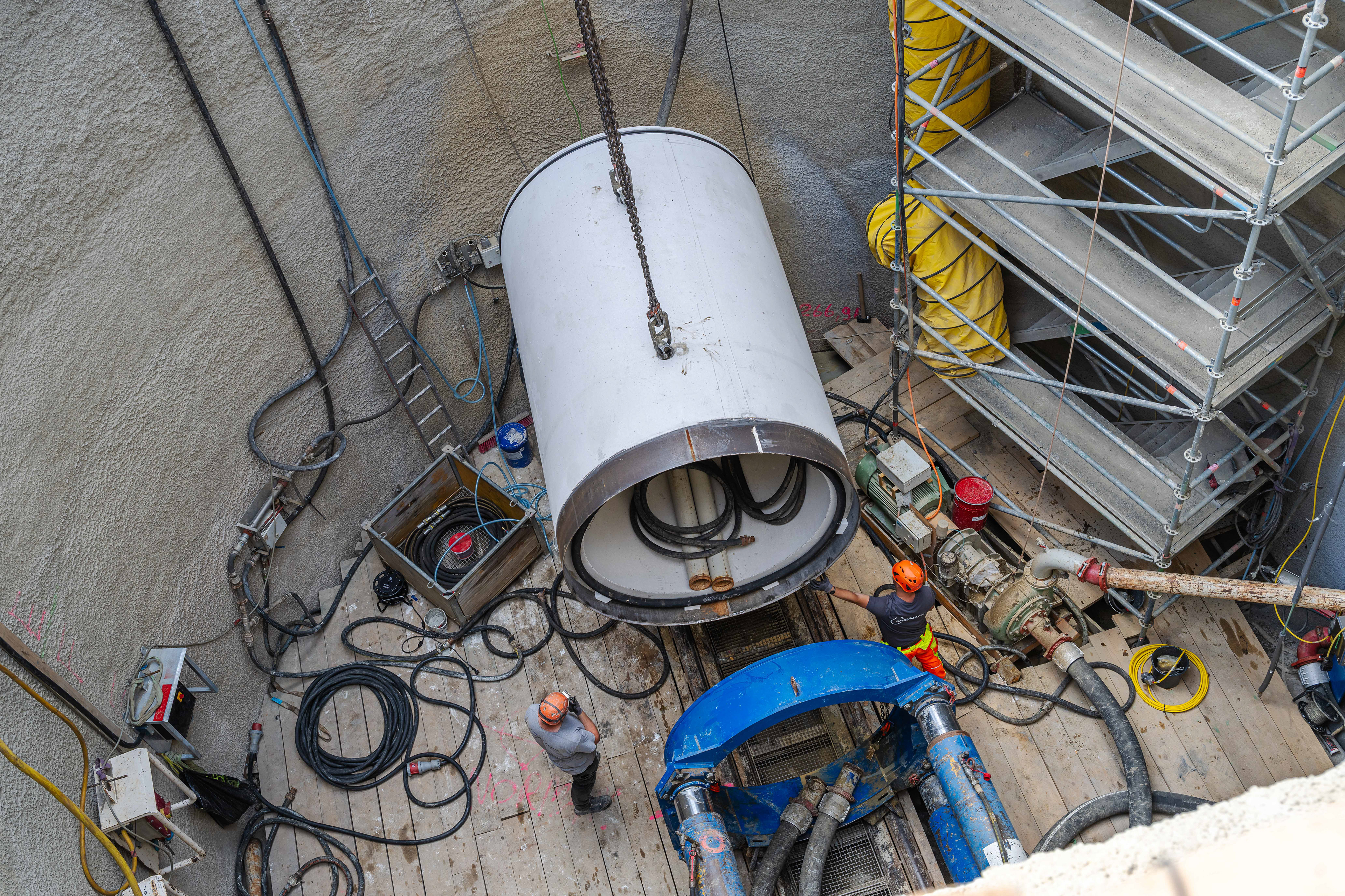 • Die AVN-Maschine wird in Segmenten in den Schacht gesetzt.