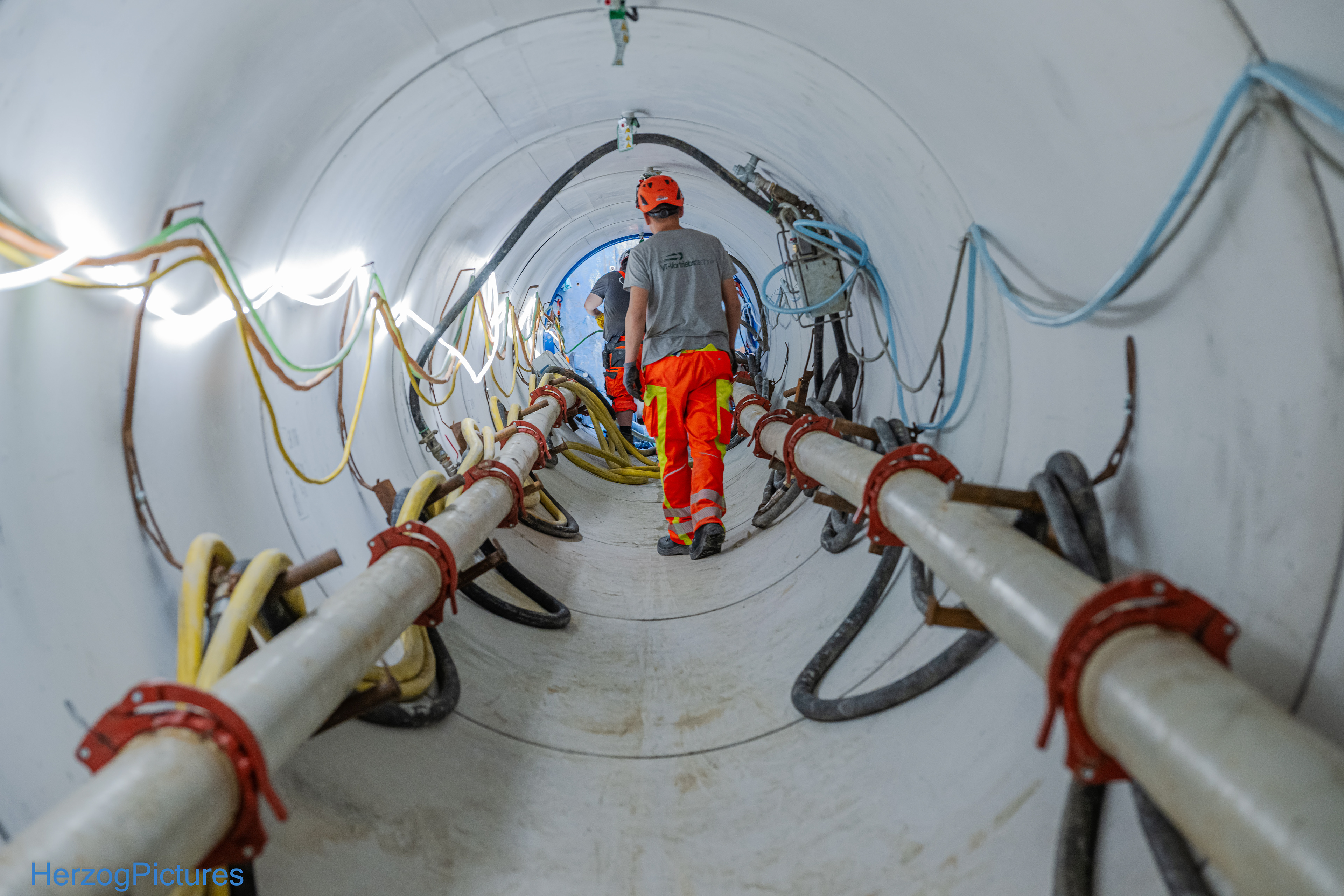 • Hinter der TBM werden Rohre nachgeschoben, die gleichzeitig die Linie bilden.