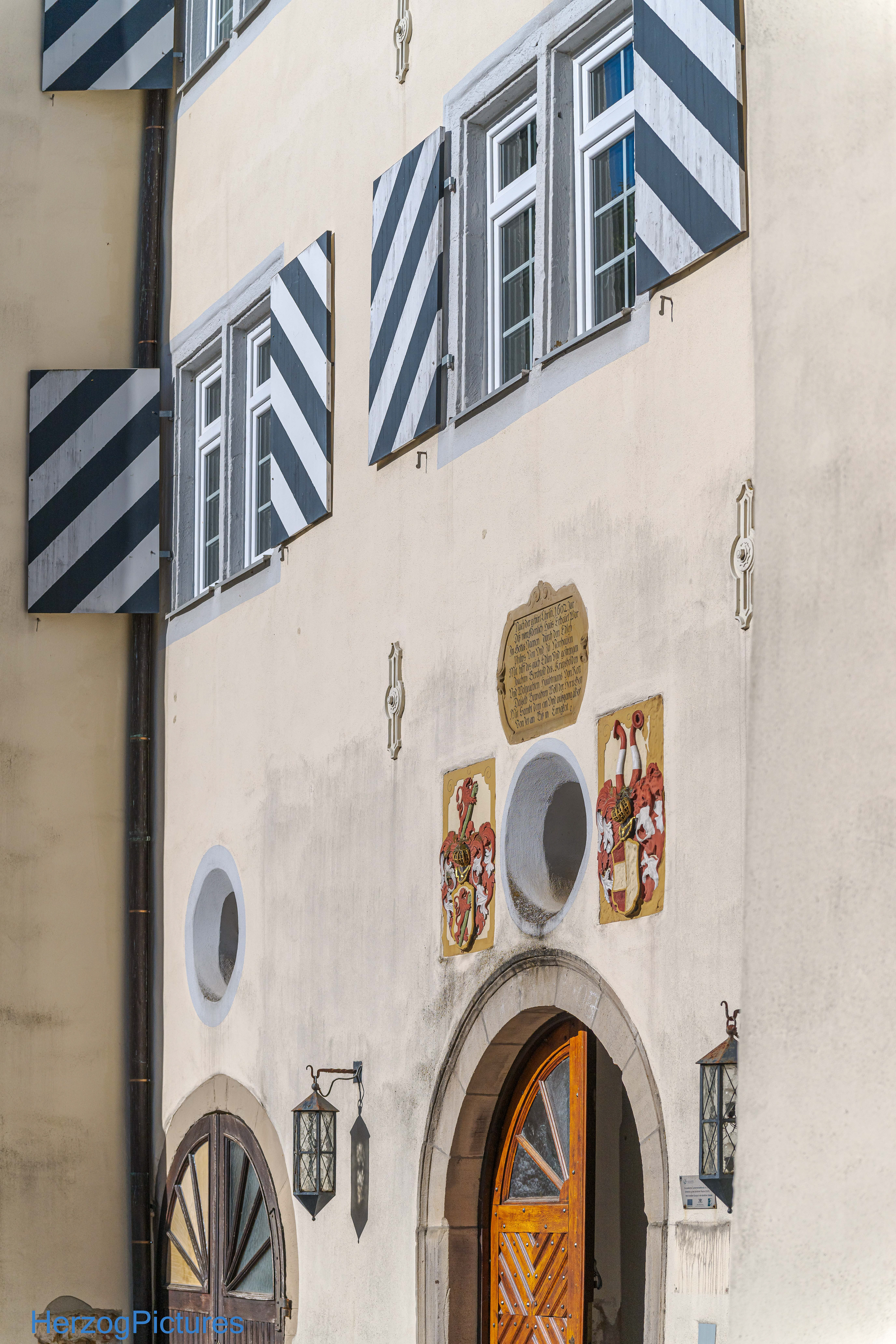 Ihre Wappen sind am Haupteingang (Ostseite) als Relief erhalten.