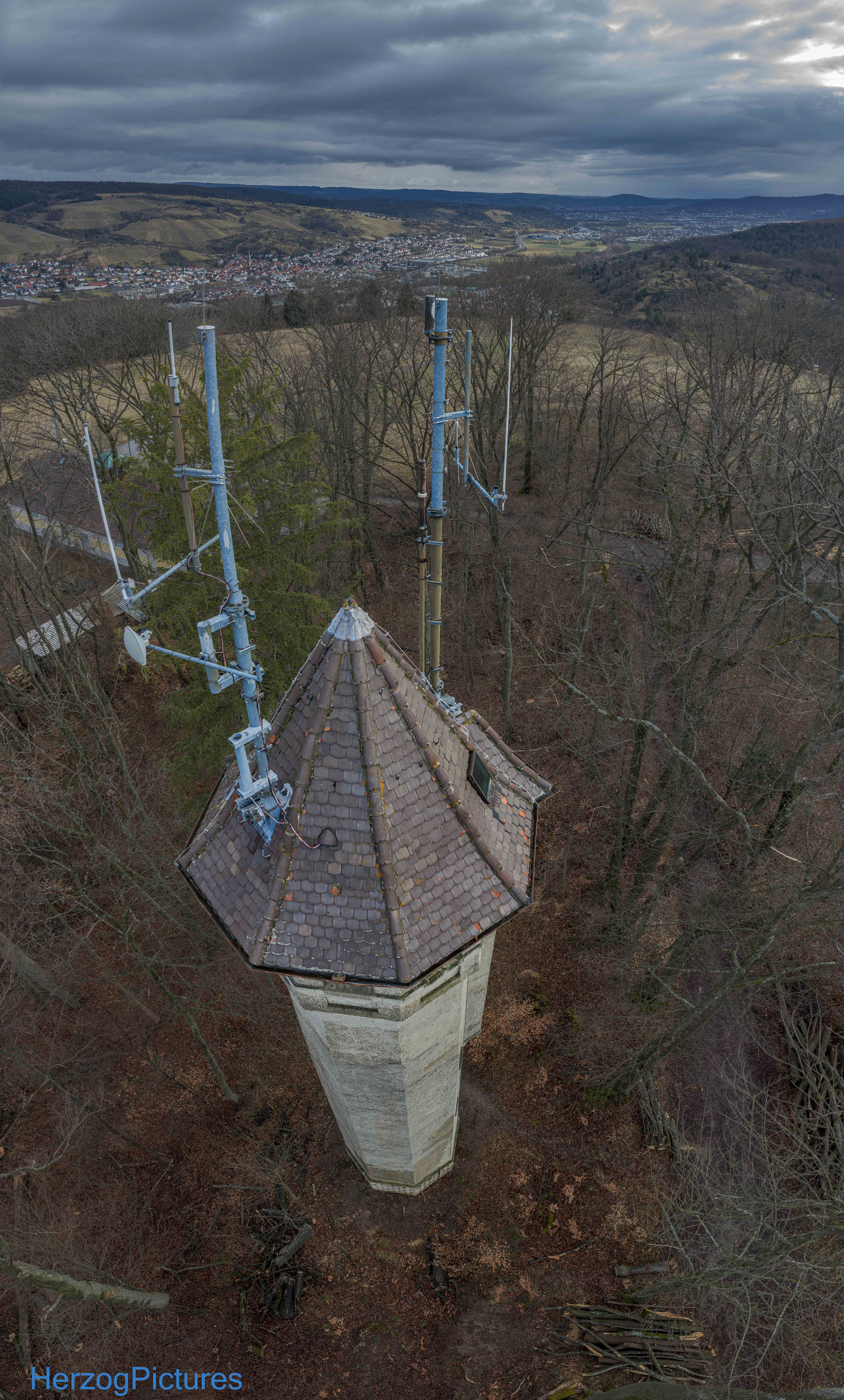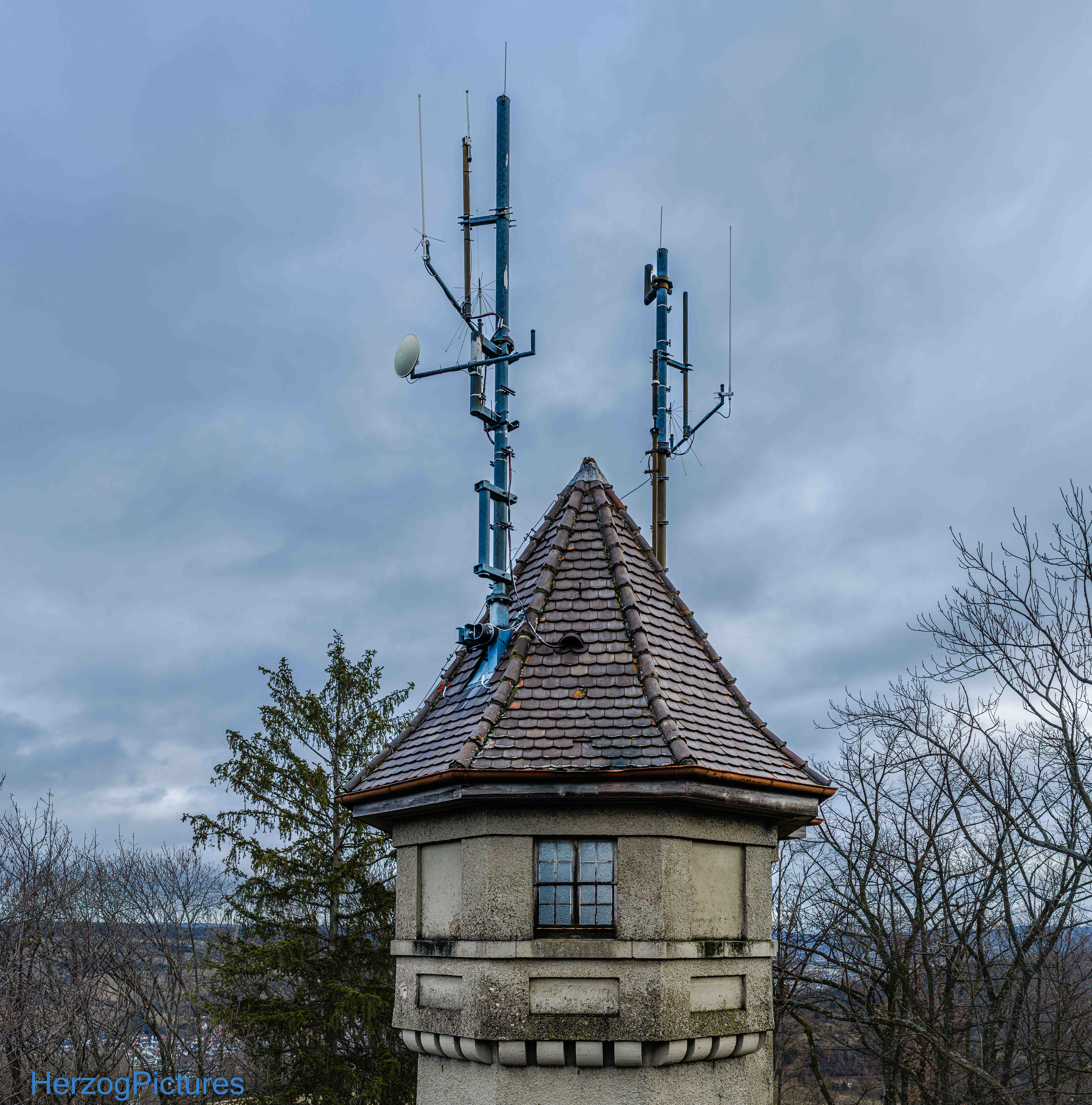 Zustand: Außer Betrieb, aber denkmalgeschützt. Auf dem Turm befinden sich heute Antennen (u. a. DARC-Ortsverband Waiblingen).