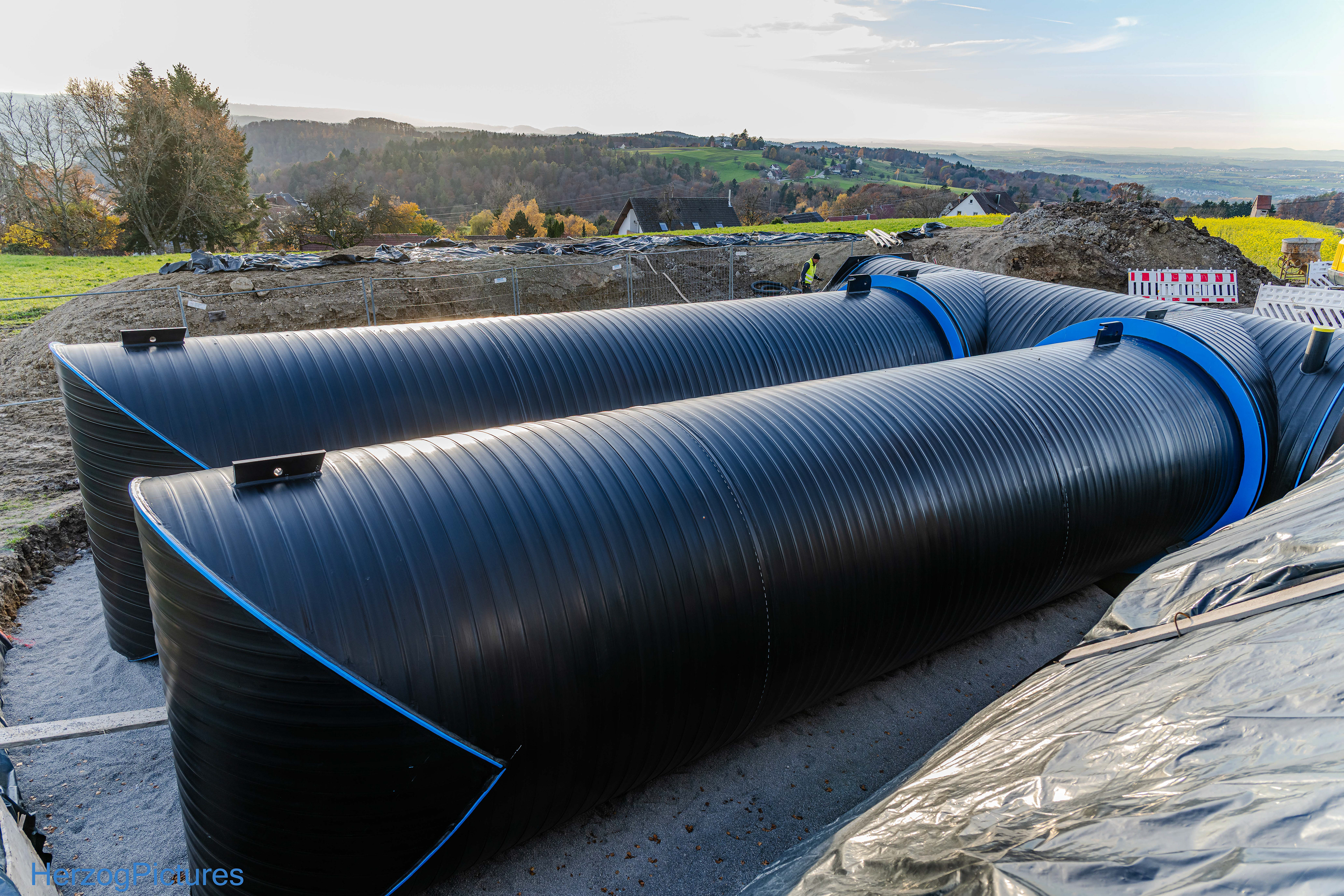 Am Aussichtspunkt “Haube” (536 m ü. NN) entsteht ein neuer Hochbehälter zur sicheren Trinkwasserversorgung von ca. 1.000 Einwohnern in Mannenberg zur Verbesserung der Pufferkapazität.